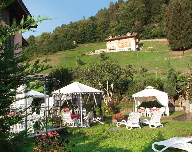 Il nostro hotel si presenta come una struttura nuova, calda, un luogo tranquillo in un paese che offre la possibilità di vivere in serenità una vacanza con famiglia. Passeggiando per dieci minuti dal centro di Malè (capoluogo della Val di Sole) verso la montagna trovate l'Hotel Michela, immerso nel verde, adornato da un rigoglioso giardino. Un luogo di quiete dove rilassarsi. Respirate il profumo del gelsomino, lasciatevi cullare dal clima mite e dal cantare degli uccellini, rilassatevi con un libro o un gustoso aperitivo, godetevi momenti di benessere nel nostro centro wellness. Il giardino fiorito adiacente al nostro family hotel è l'ambiente ideale per godere di piacevoli momenti di pace e relax.